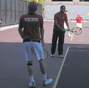 First up in the morning was No. 8 Wisconsin against No. 9 Purdue. Wisconsin's Nolan Polley & Jeremy Sonkin (above) were the first to get it done with an 8-6 win over Colin Foster & Kurt Zaske. It wasn't long before teammates Felipe Bellido & Lachezar followed with their 8-3 defeat of Eric Hodgman & Griffin Nienberg. Nolan Polley led the Badgers once again with the first singles win, but Purdue's Kurt Zaske picked up one for his side. It wasn't enough as Eric Hodgman and Gian Hodgson took Wisconsin to their 4-1 win. As the day went on the individual matches were not all so quick. The doubles between No. 6 Penn State and No. 11 Iowa went down to the wire. Malcom Scatliffe & Brenden Lynch took the first for the lions, but Bart van Monsjou & J.P. Ritchie quickly followed with a tight 9-7 win for the Hawkeyes. It was down to the PSU's Ryan Berger & Bradley Hunter against Iowa's Brett Taylor & Kyle Markham. Before the suspense went to far it was 8-4 for the Penn State duo. The singles went pretty quickly, though, for Penn State's Bradley Hunter, Ryan Berger and Mark Barry. Adam Slagter even managed to give them a fifth point quicker than the match could be called.