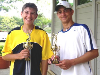 The Deerwood Country Club was the site for the Boys 14s & 12s and the Girls 14s finals. Though there was disappointment that there was little viewing for some of the finals, there was still a lot of great tennis. The most fascinating sight to all was the dramatic difference in player sizes between the Boys 14s & 12s as they played on adjoining courts. It suddenly didn't matter after just a few minutes of watching the battle between ten year olds Thai Kwiatkowski and Kenneth Sabacinski when the crowd saw an incredible level of play that had nothing to do with height. Thai squeezed out that quarterfinal playoff match, 6-4,7-5. While those two held close to their fourth and fifth seeding, many of the others did not. Unseeded Venkat Iyer made it all the way to the finals of the 14s before losing to second-seeded Adam Bernstein, 7-5,6-0, and unseeded Sam Wells was a sixth-place finisher after losing two tiebreak sets to No. 4 Spencer Wolf. The Boys 12s held pretty true with No. 2 Quinton Vega over No. 1 Spencer Newman, 6-3,6-0. The Girls 14s finished in a predictable manner as the top prize went to third-seeded Christina McHale over No. 5 Connie Hsu, 7-5,2-6,6-1, while No. 4 Ebie Wilson took third over No. 6 Jill Saunders, 6-4,6-3. Top-seeded Kathryn Talbert brought home the fifth place trophy.