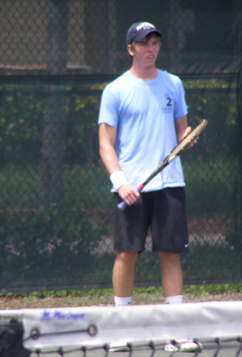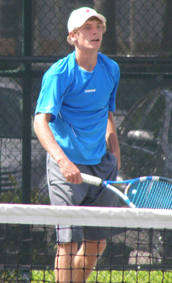 Thursday, July 22, 2010-Day Five-Boys' 18 & 16, Girls' 12 I did make it back to the Girls' 12s in the afternoon to see some impressive doubles for this age group. With USTA National Coach Lori McNeil on hand to watch some of what her girls have learned, the No. 6 team of Jada Hart & Maddie Pothoff squeaked by No. 4 Angela Kulkov and Emma Higuchi (above), 6-3,4-6,6-4. I saw plenty of Boys' 18 singles at the Delray Beach Tennis Center, where the seeds continue to fall. I got there for the start of the second set between doubles partners Bjorn Fratagelo (1) and Nathan Pasha (12). Bjorn had pulled a shutout in the first, but the second was a different story. A large crowd (mostly college coaches) gathered for some exciting points, but it was the top seed who garnered the match with a 7-5 win in the second.