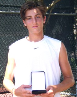Wednesday, July 7, 2004-Final Day ![]() I should have learned by now that tennis matches hardly ever progress as you expect them to. There was no better lesson in that than today. As one final shocked the crowd as it passed through, the other kept the suspense for hours. Cory Parr (pictured right) continued his pattern of winning quick and easy, but this time it was against the number two seed. Alex Vasin had looked strong all tournament and, even though Cory had only one tough match in the first round, no one expected the top seed to run through this final at 6-1,6-0. Even the first game (which went to deuce four times) had the crowd expecting a long battle between the two Easterners. There was no battle, though, today Alex just couldn't put it together.