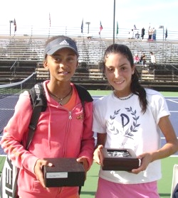 Saturday, January 1, 2005-Final Day Happy New Year! It was an early New Year's Eve for me as I was a little jet-lagged from my trip to Tucson for the USTA National Winter Championships and the Copper Bowl. It's just unbelieveable here at the beautiful Hilton El Conquistador where tournament director Don Dickinson, his staff and the staff of the Hilton coordinate the finals of the USTA National Winter Championships and the beginning of the Copper Bowl. I, on the other hand, can only handle one tournament at a time and today it's the end of the 14s and the 12s at the National Winters. Rain really wrecked havoc with the schedule this week, but the majority of the matches were completed in the end. In the boys & girls 14s and the girls 12s, the top seeds prevailed as Chase Buchanan, Brittany Augustine and Christina McHale took home Gold Balls. Jack Sock, the number two seed, took the boys 12s. It was a crazy day trying to keep up with all the trophy presentations, but tomorrow I will be back with lots of action photos and news from the Copper Bowl Championships. Until Tomorrow,