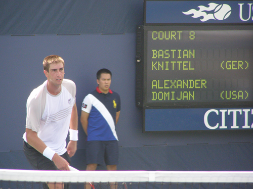 who lost a tough battle to Bastian Knittel, 7-6,6-4. Another college player, Soithern Cal's Steve Johnson, looked a bit nervous out there and