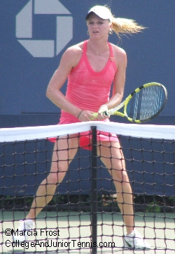 Fortunately for the U.S. fans, the females have been doing a bit better than the males. Eighth-seeded Lauren Albanese survived a baseline battle over tenth-seeded Ksenia Lykina, 6-3,2-6,6-4 which I caught a bit of during the second and third sets. She was the only one of her countrywomen in singles as Ashley Weinhold (pictured right) fell to Sacha Jones, who would have been seeded had she not been injured through the French Open and Wimbledon. Qualifier Kim Couts looked like